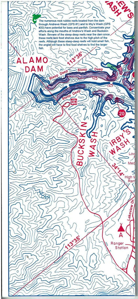 Alamo & San Carlos Reservoirs with GPS! Improved! with Fish Habitat Locations! (Waterpoof & Tearproof Plastic!)