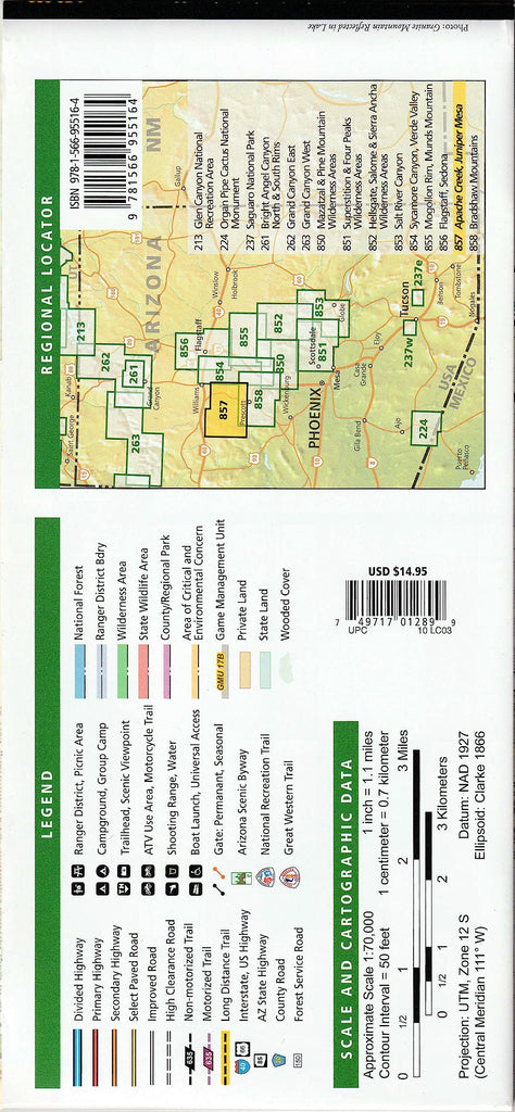 Outdoor enthusiasts adventuring through the northern half of Prescott National Forest will find this map of Apache Creek & Juniper Mesa an essential travel companion. Covering the area with unmatched detail, this comprehensive map was expertly researched & created in cooperation with the U.S. Forest Service & others. Some of the recreation hotspots shown are Apache Creek, Juniper Mesa, Woodchute, & Granite Mountain Wilderness areas, Upper Verde River State Wildlife Area, Black Hills, & Verde Wild & Scenic River.