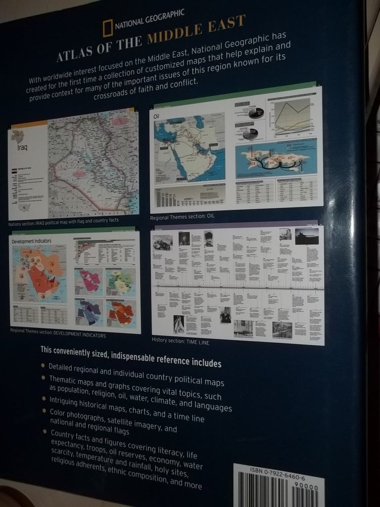 Taken from back dust cover: "With worldwide interest focused on the Middle East, National Geographic has created for the first time a collection of customized maps that help explain and provide context for many of the important issues of this region known for its crossroads of faith and conflict. This conveniently sized, indispensable reference includes: 1) Detailed regional and individual country political maps, 2) Thematic maps and graphs covering vital topics, such as population, religion, oil, water, climate, and languages, 3) Intriguing historical maps, charts, and a time line, 4) Color photographs, satellite imagery, and national and regional flags, 5) Country facts and figures covering literacy, life expectancy, troops, oil reserves, economy, water scarcity, temperature and rainfall, holy sites, religious adherents, ethnic composition, and more." NSI-Phx.AtlasOfTheMiddleEast