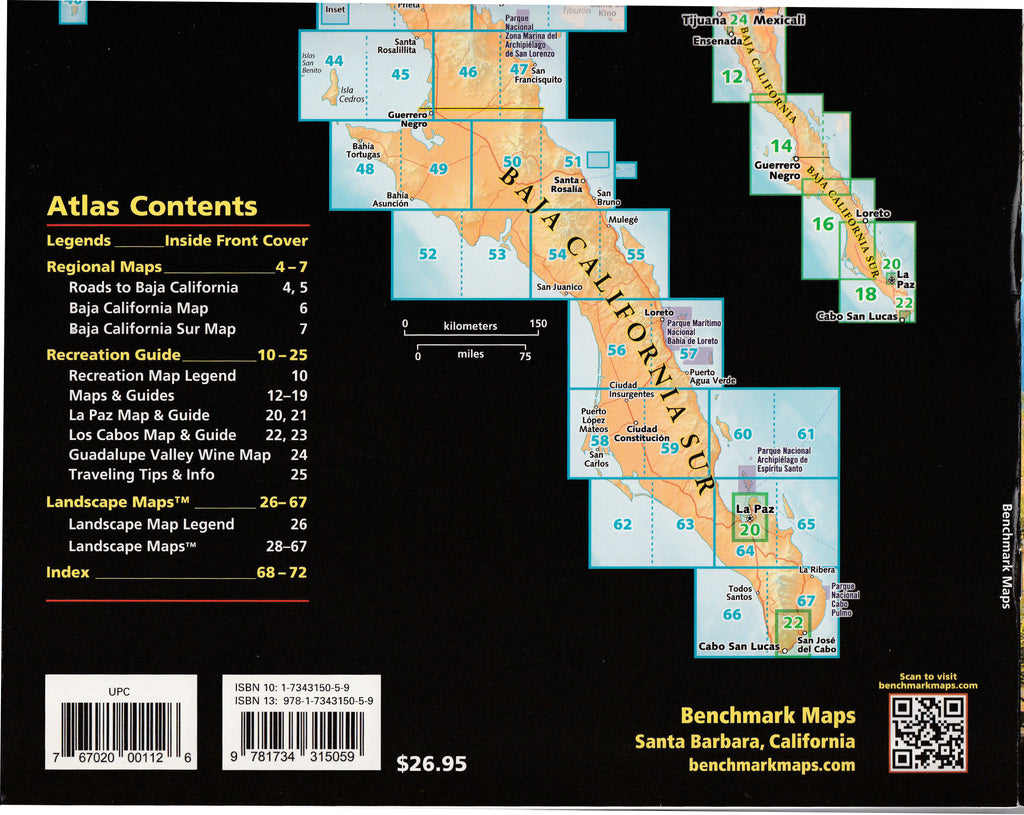 The Baja California Road & Recreation Atlas showcases the diverse recreation opportunities found along the full length of the Baja California Peninsula. Regional maps provide a wider view of the region and Recreation Guides list an array of attractions for trip planning. Landscape Maps™ bring the peninsula’s rugged terrain into focus with land cover data, shaded relief, and a detailed road network to aid travelers navigating between cities or seeking remote destinations. From Tijuana to Cabo San Lucas, this is the best recreation map product on the market.
