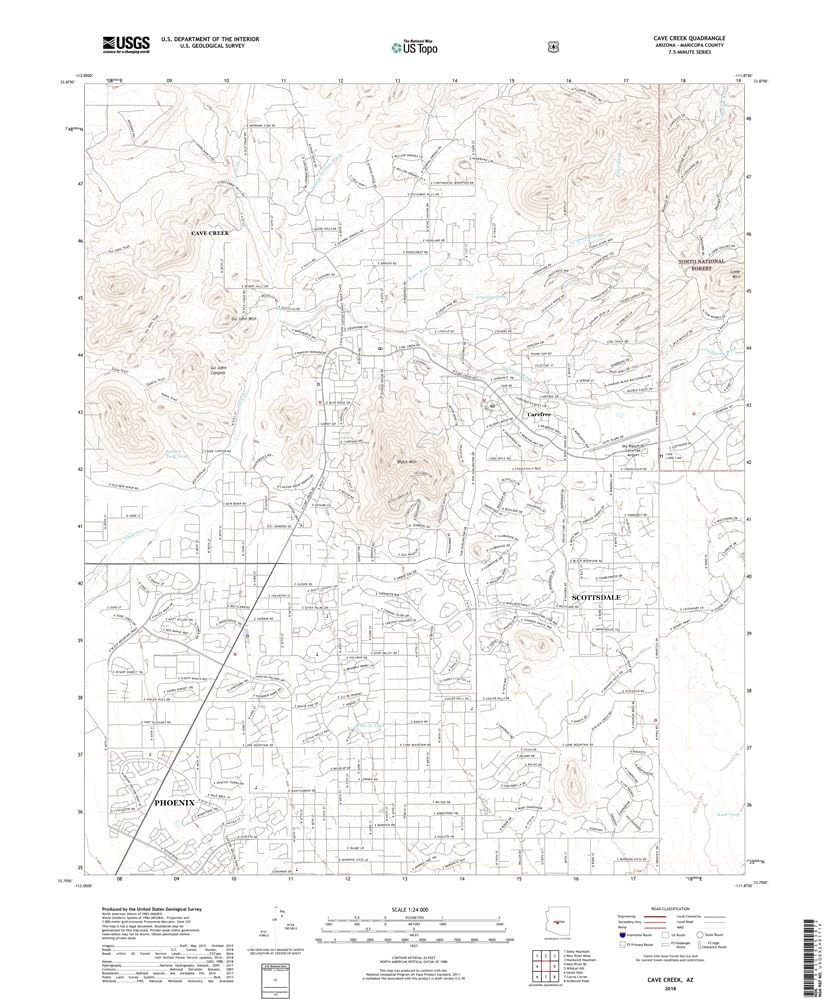 - Description: United States Geological Survey Cave Creek, Arizona The National Map US Topo 7.5×7.5 Grid 24000-Scale 2018