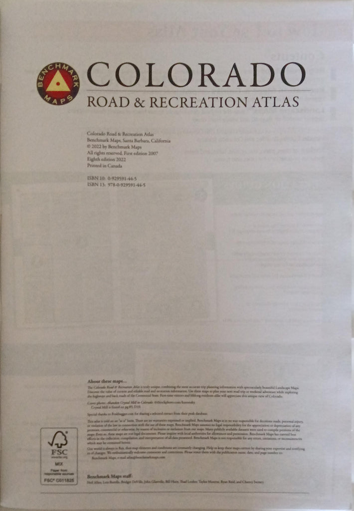 Benchmark’s Colorado Road & Recreation Atlas is designed to help residents and visitors make the most of Colorado’s endless recreation opportunities. The recreation guide includes lists of attractions, trailheads, fishing spots, historic sites, and much more throughout the state. The Landscape Maps show all drivable roads, classed by surface and purpose. Large-scale metro maps of Denver, Boulder, and Colorado Springs are also included.