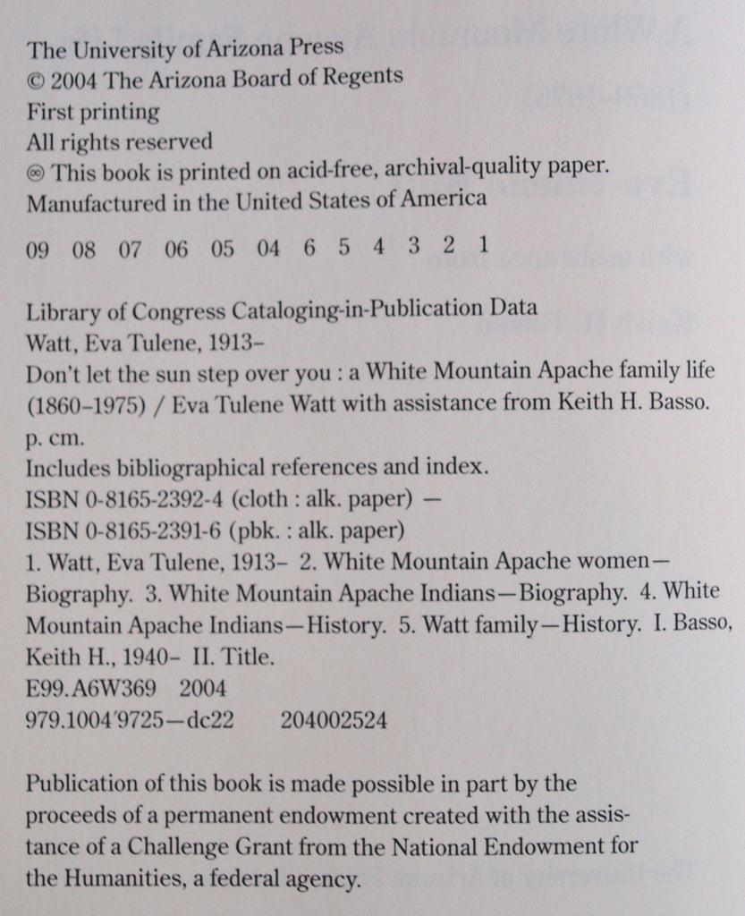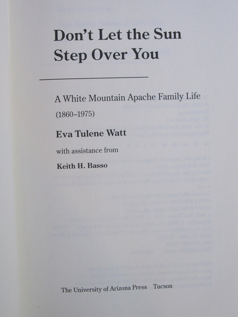 Don't Let the Sun Step Over You: A White Mountain Apache Family Life, 1860-1975 Watt, Eva Tulene and Basso, Keith H.