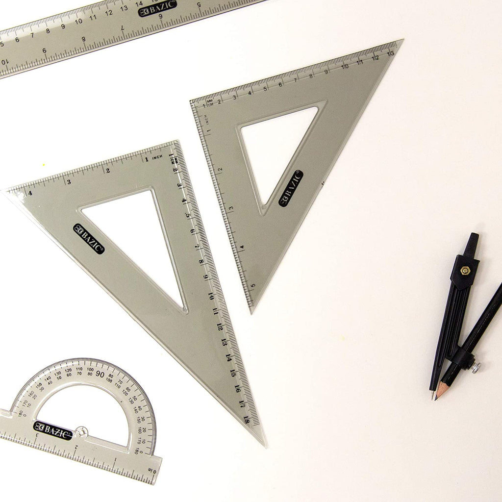 Geometry Ruler Combination Sets w/ Compass (5-Piece)