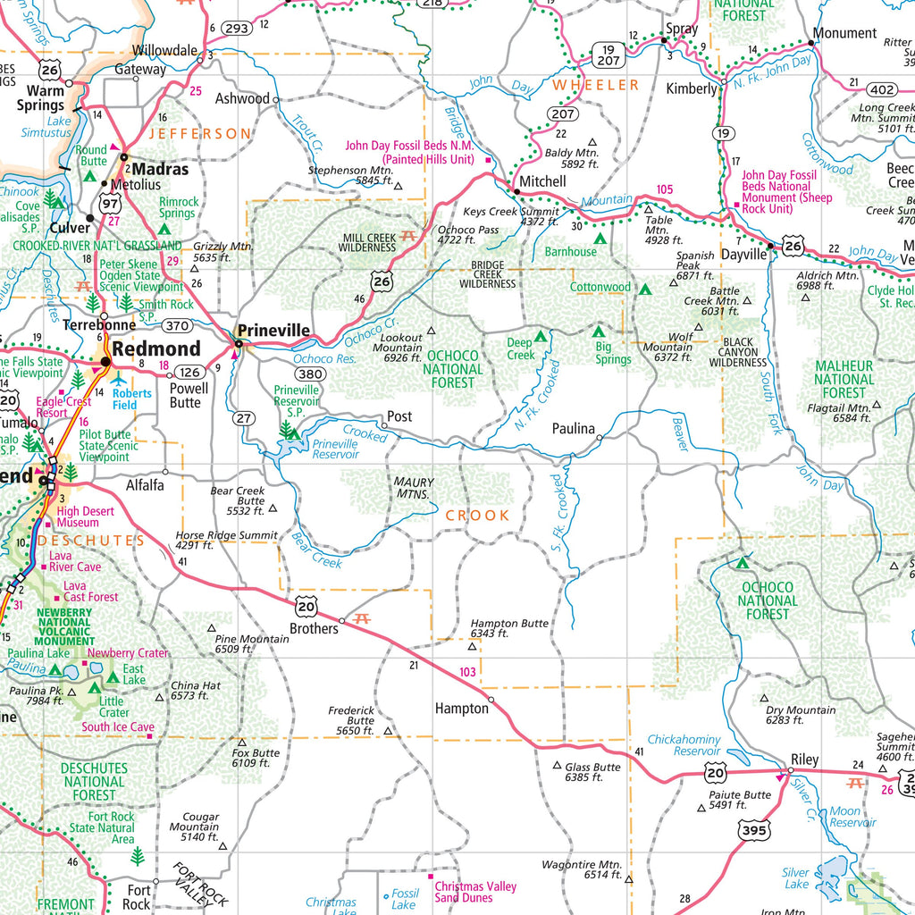 - Detailed maps of: Corvallis, Crater Lake National Park, Eugene, Medford, Portland & Vicinity, Downtown Portland, and Salem