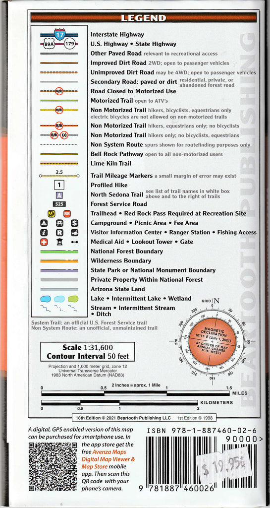 Sedona has been a highly prized recreation destination for decades, but in the last few years, it has become even more so. Although the trails are excellent, the real draw of Sedona has always been its unique, incredible scenery of red rock canyons, spires, and buttes. This map covers south of Sedona to the Village of Oak Creek, north through Oak Creek Canyon to the Oak Creek Canyon Vista, and west to the Sycamore Canyon trailhead. It is designed primarily for visitors who are hiking and includes brief descriptions of 21 local day hikes.