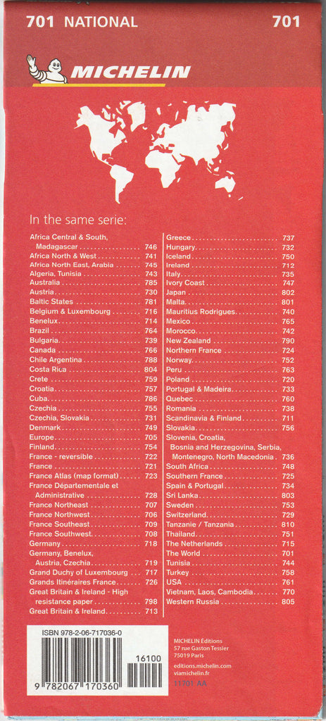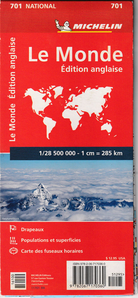 (Edition 17.1 updated in 2022) Updated regularly, Michelin National Map 701 The World will give you an overall picture of the World thanks to its clear and accurate mapping scale 1/28,500,000. Our map will help you easily help you identify the different countries of the world, their administrative boundaries as well their main road networks. With Michelin National Maps, find more than just your way!