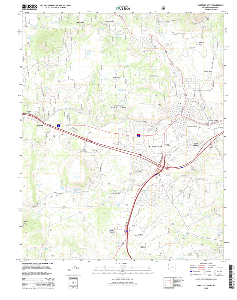 - Description: United States Geological Survey Flagstaff West, Arizona, The National Map Historical Reprint 7.5×7.5 Grid 24000-Scale US Topo 2014