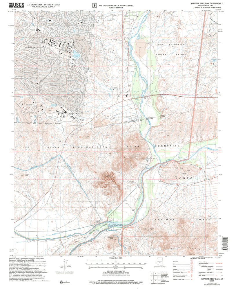 - Description: United States Geological Survey Granite Reef Dam, Arizona Historical Map Reprint 7.5×7.5 Grid 24000-Scale 2004