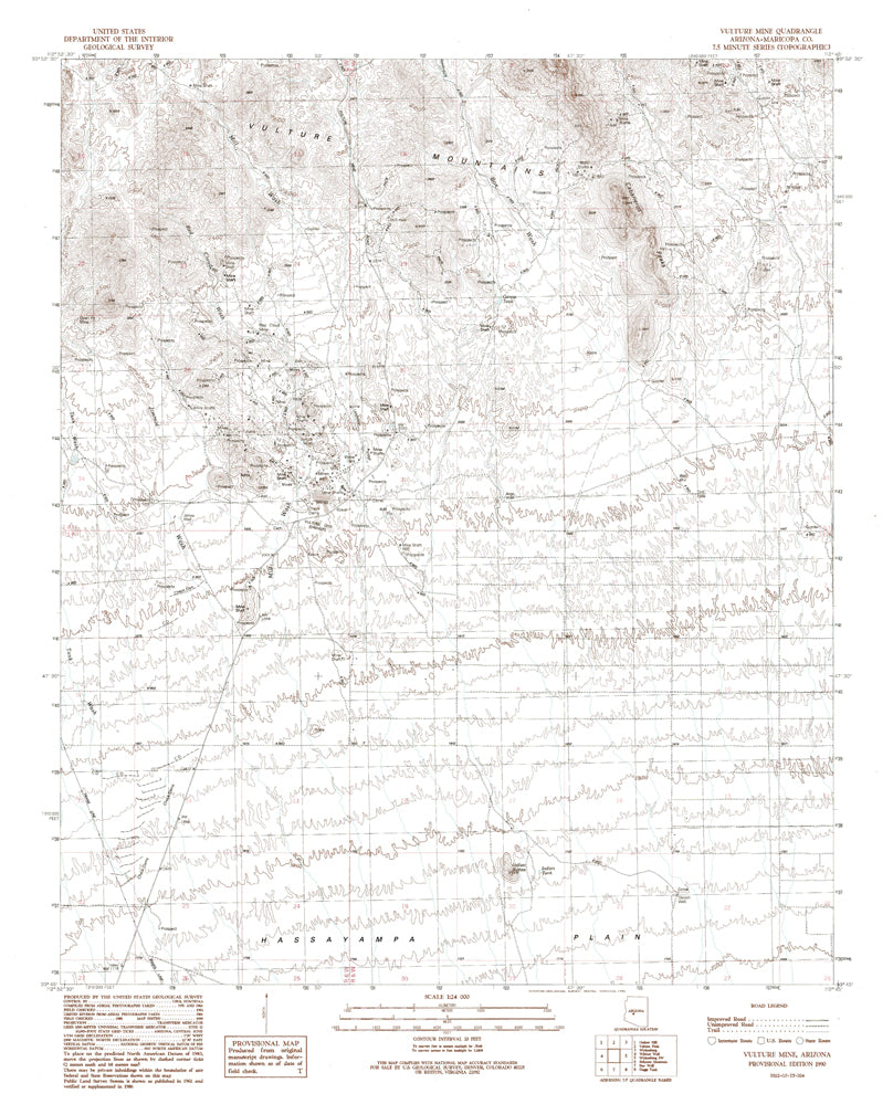 - Description: United States Geological Survey Vulture Mine, Arizona Historical Map Reprint 7.5×7.5 Grid 24000-Scale Provisional Edition 1990