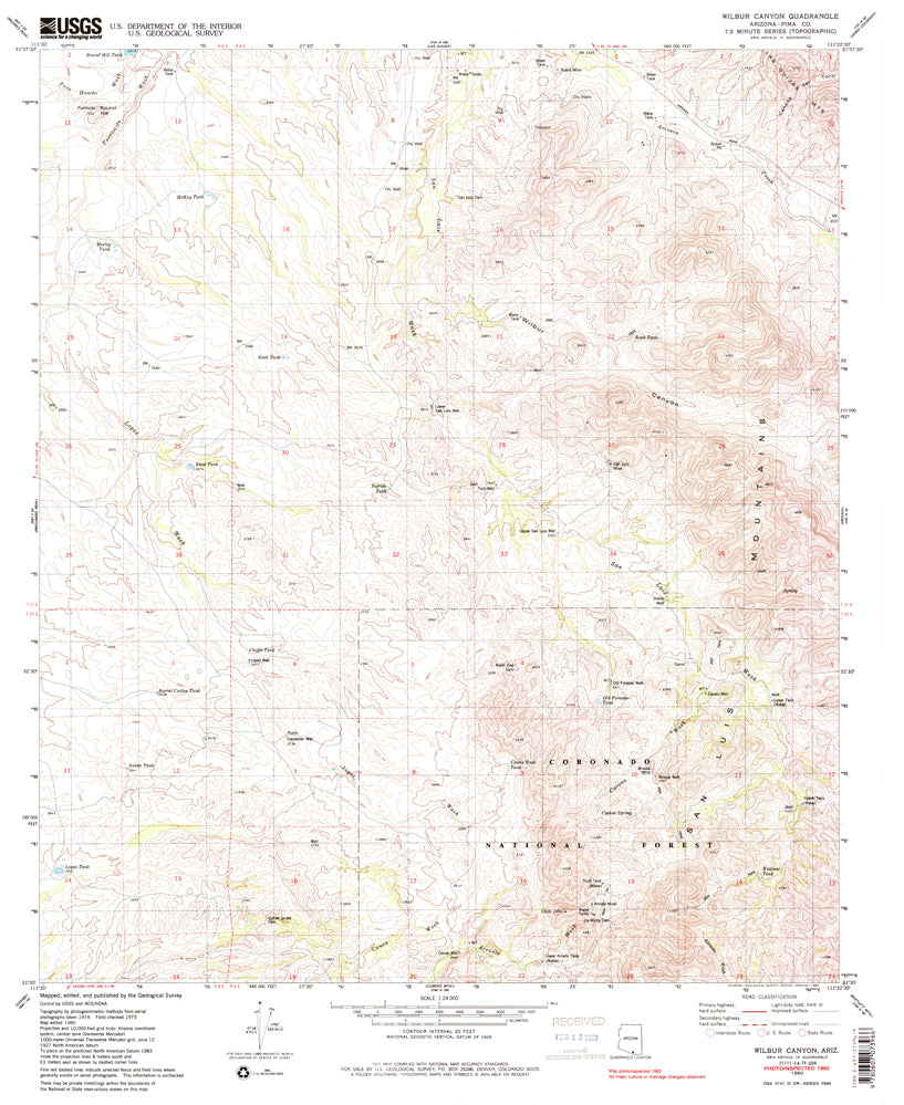 • Description: United States Geological Survey Wilbur Canyon, Arizona Historical Map Reprint 7.5×7.5 Grid 24000-Scale 1980 Photoinspected 1982