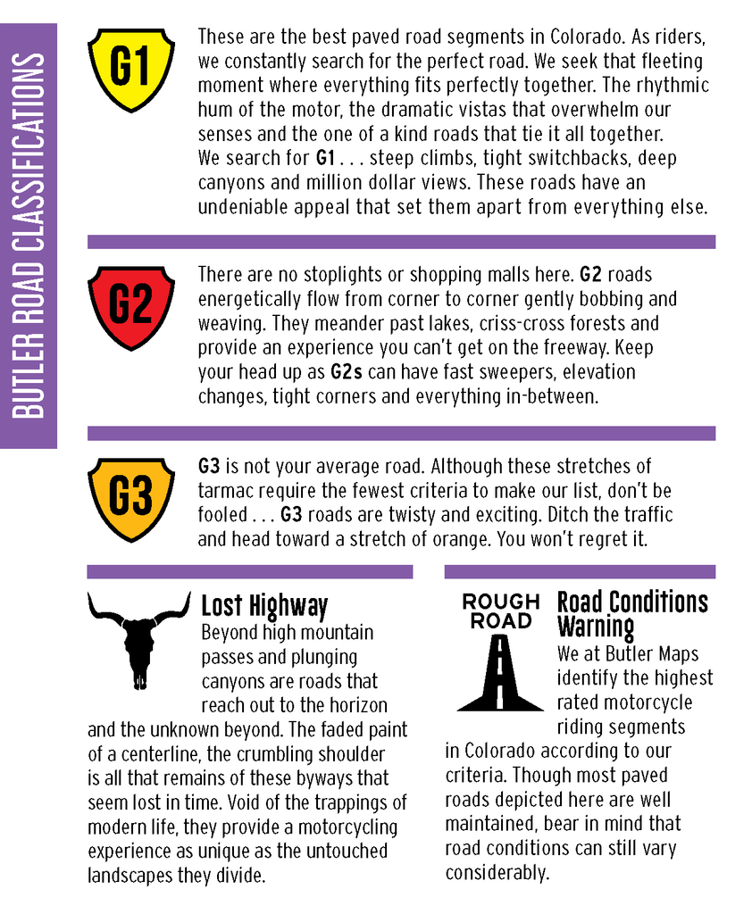 Seventeen expanded inset maps of the top rated rides provide greater detail of key areas of the state. You can rest assured we’ve got you covered with all of the best experiences to be had in Arizona. Not to mention, all of our G1-Series paved road maps also feature over 40 recommended dual-sport roads so you can hopscotch from the best paved sections of road to the best dirt sections of road simply by following the colors on the map.