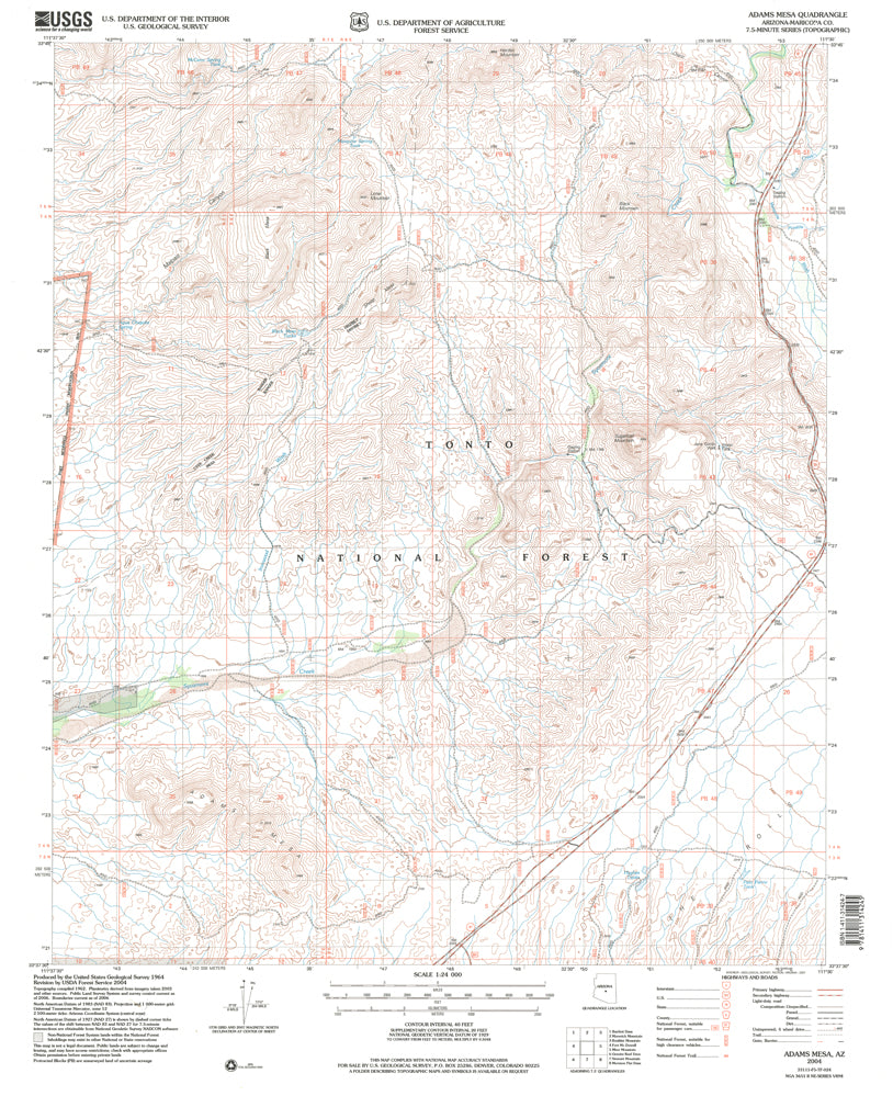 • Description: United States Geological Survey Adams Mesa, Arizona Historical Map Reprint 7.5×7.5 Grid 24000-Scale 2004
