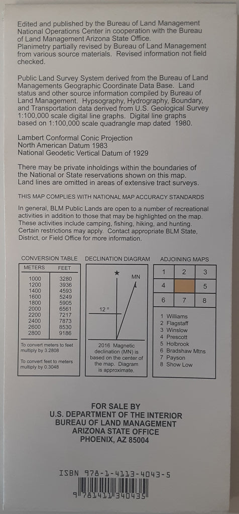 BLM map shows roads, campgrounds, and topographic detail. Differentiates between public and private land, and also among the various agencies who manage the public lands. Explore beautiful Red Rock country, and Oak Creek Canyon near Sedona. Enjoy Scenic driving Hwy 89A with camping, picnicking, fishing, and hiking along the way. Also enjoy the Verde River; offers fishing and picnicking. Drive to Mormon Lake for fishing, camping, picnicking, and boating. Map is useful for AZ Hunting Units 5A, 5Bn and 5BS, 6A and 6B.