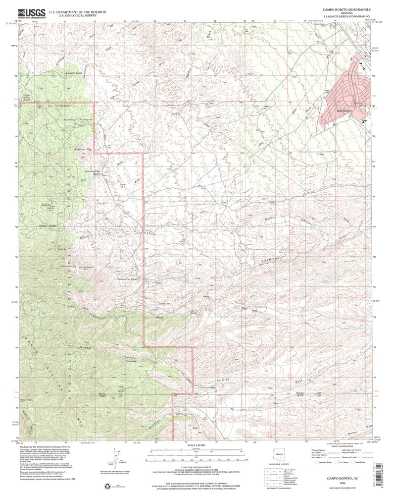 Campo Bonito, AZ 1996 USGS 7.5 - minute topographic quadrangle map