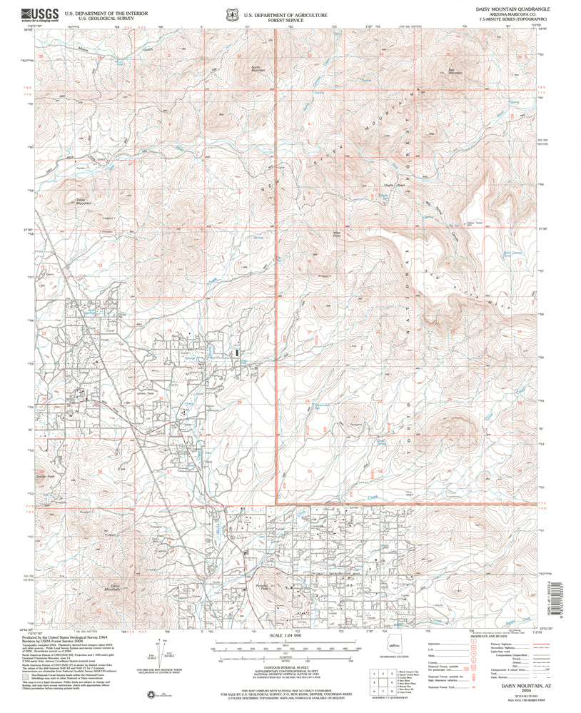 - Description: United States Geological Survey Daisy Mountain, Arizona Historical Map Reprint 7.5×7.5 Grid 24000-Scale 2004