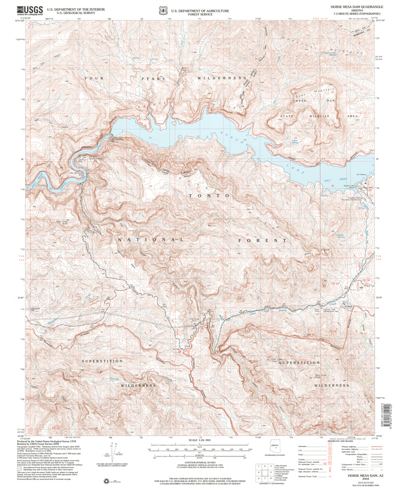 - Description: United States Geological Survey Horse Mesa Dam, Arizona Historical Map Reprint 7.5×7.5 Grid 24000-Scale 2004