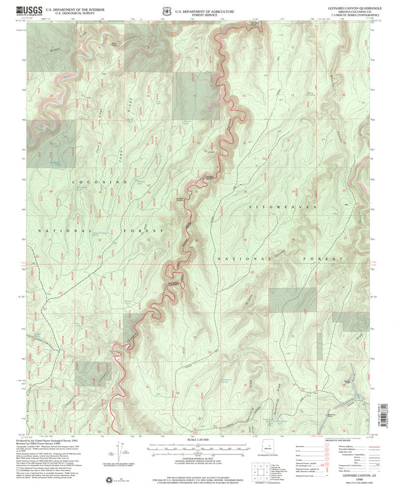 Leonard Canyon 7.5' AZ 1998 Map U.S. Geological Survey