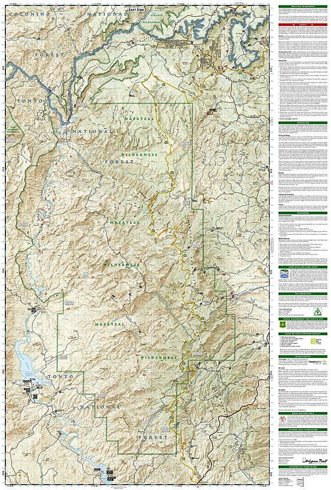 Outdoor enthusiasts looking for recreational opportunities just north of Phoenix, will marvel at National Geographic's Trails Illustrated map of Mazatzal and Pine Mountain Wilderness Areas. Expertly researched and created in cooperation with the U.S. Forest Service, Bureau of Land Management, and others, the map covers these wilderness areas in Coconino, Prescott, and Tonto National Forests with unmatched detail. Some of the region's popular recreation spots detailed include Agua Fria National Monument, Verde Wild and Scenic River, Mogollon Rim, Bartlett and Horseshoe Reservoirs, Mazatzal Peak and Mountains, Spur Cross Ranch Conservation Area, and Tonto Natural Bridge State Park.