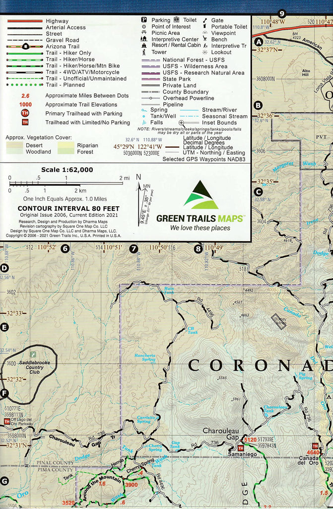 • Map Scale 1:62,000 with 1:35,000 inset of Sky Island Scenic Byway
