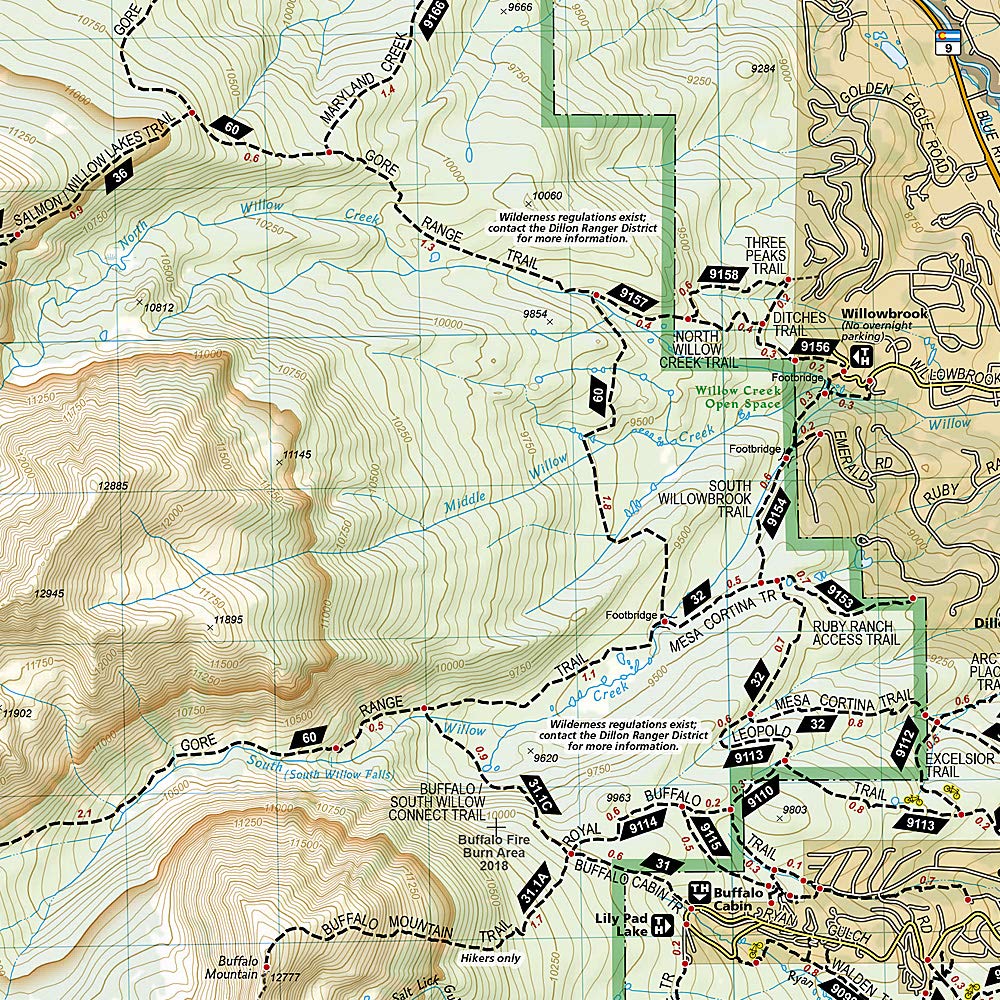 Though best known for winter sports, Vail and its neighboring communities are popular destinations for year-round outdoor recreation. National Geographic's Trails Illustrated map of Vail, Frisco, and Dillon is an unparalleled tool for exploring this region of the Colorado Rockies. Created in partnership with local land management agencies, this expertly researched map delivers unmatched detail and helpful information for experienced outdoor enthusiasts and casual visitors alike. Key areas of interest featured on this map include Dillon Reservoir, Silverthorne, Black Lakes and Blue River state wildlife areas, Eagle River, and Vail Ski Area.