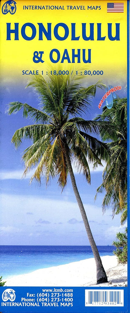 Honolulu (Waikiki to Pearl Harbour) / Oahu Travel Map Waterproof 1:18K/80K Hawaii