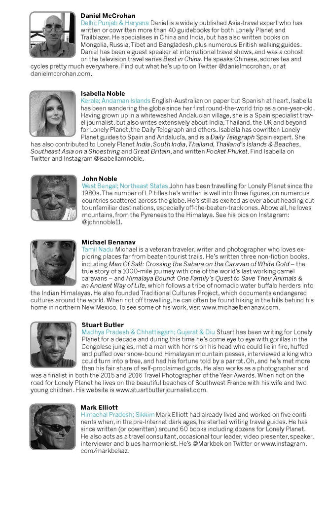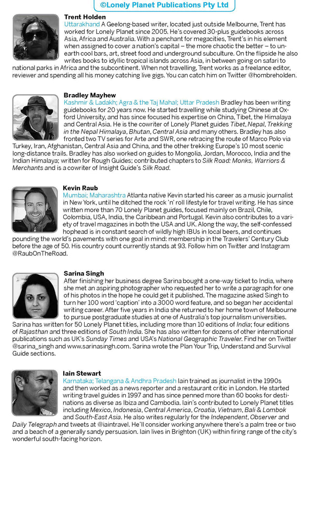 - Lonely Planet India (Travel Guide) Lonely Planet; Benanav, Michael; Butler, Stuart; Elliott, Mark; Holden, Trent; Mayhew, Bradley; Noble, John; Raub, Kevin; Singh, Sarina; Stewart, Iain; Bindloss, Joe; Brown, Lindsay; Harding, Paul; Mahapatra, Anirban; Mc