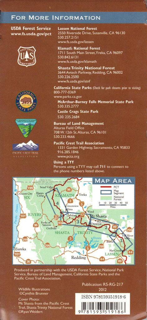 Official Forest Service map of the Pacific Crest Trail Klamath/Southern Cascades featuring the small towns of Old Station and Seiad Valley.
