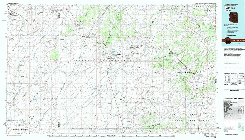 YellowMaps Polacca AZ topo map, 1:100000 Scale, 30 X 60 Minute, Historical, 1982, Updated 1983, 23.9 x 41.9 in - Paper