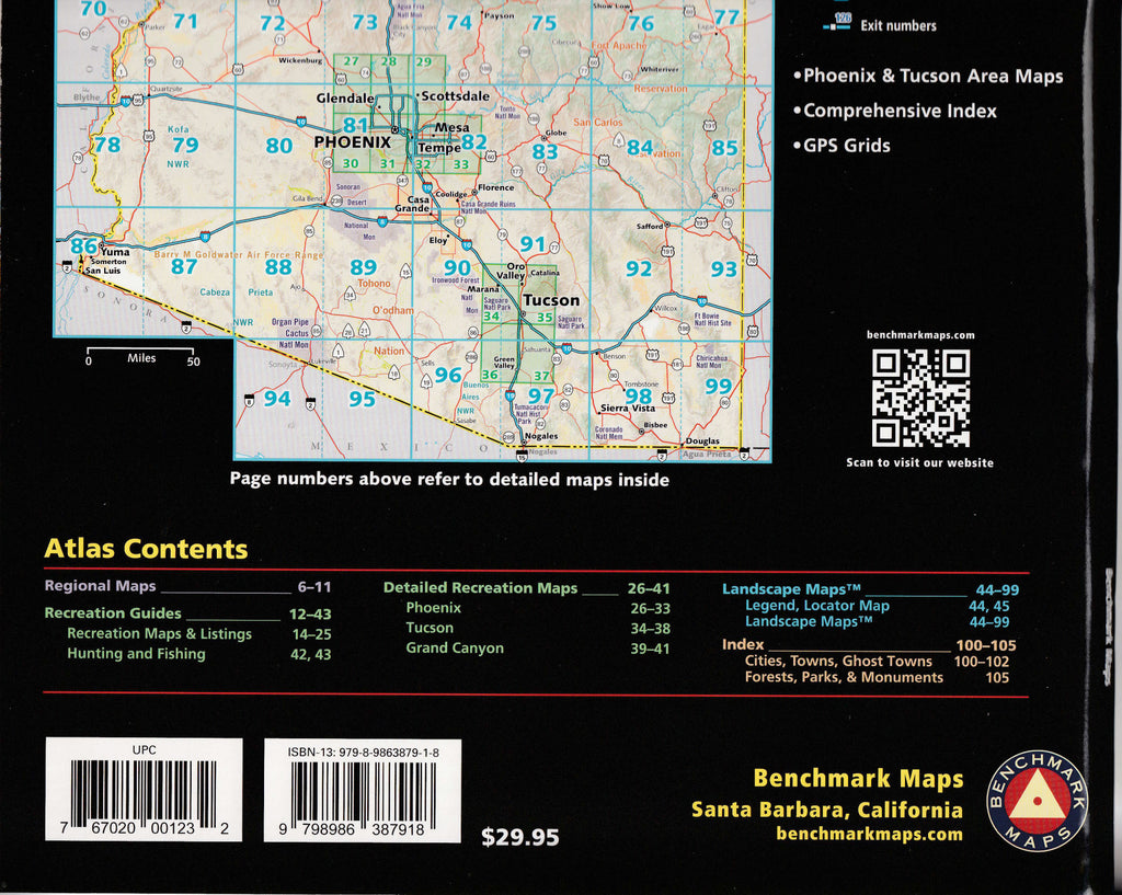 "The Grand Canyon State abounds in natural beauty and outdoor possibilities. Completely reworked with larger scale Landscape Maps and a comprehensive Recreation Guide, Benchmark's Arizona Road and Recreation Atlas is an invaluable resource for adventure planning and exploration. Landscape Maps 1:285,000. Recreation Maps 1:1,000,000. Metro Maps 1:125,000