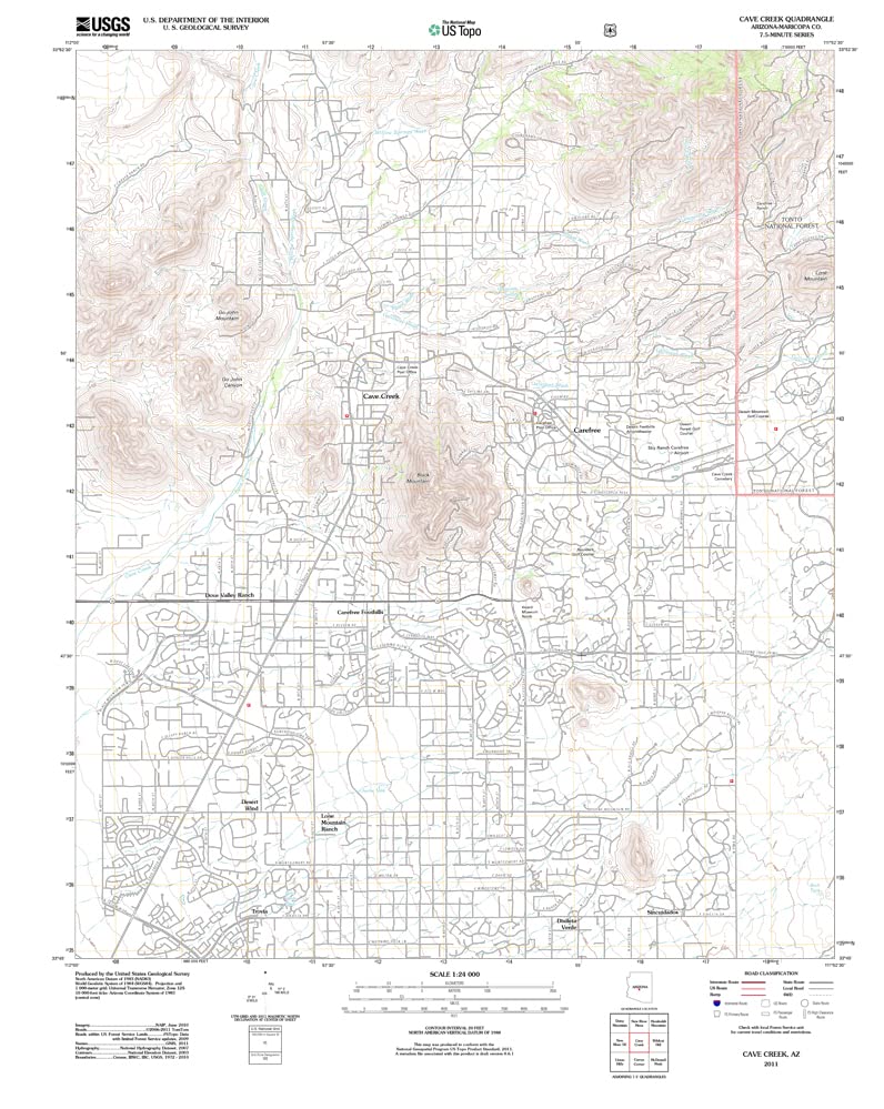 - Description: United States Geological Survey Cave Creek, Arizona The National Map Historical Reprint 7.5×7.5 Grid 24000-Scale US TOPO 2011