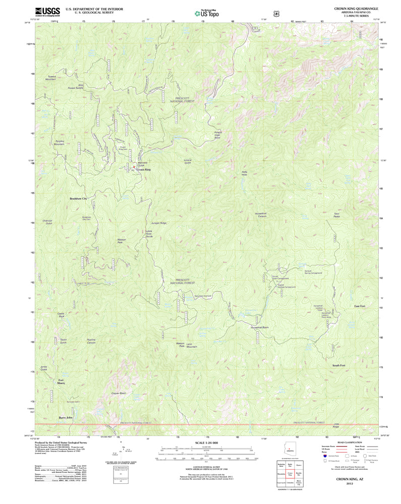 • Description: Crown King, Arizona US Topo Map 7.5'×7.5' Grid 24000-Scale 2012