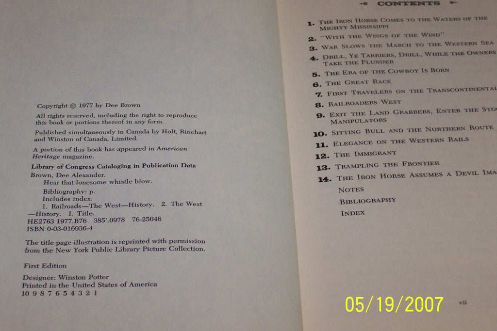 Hear That Lonesome Whistle Blow: Railroads in the West Brown, Dee