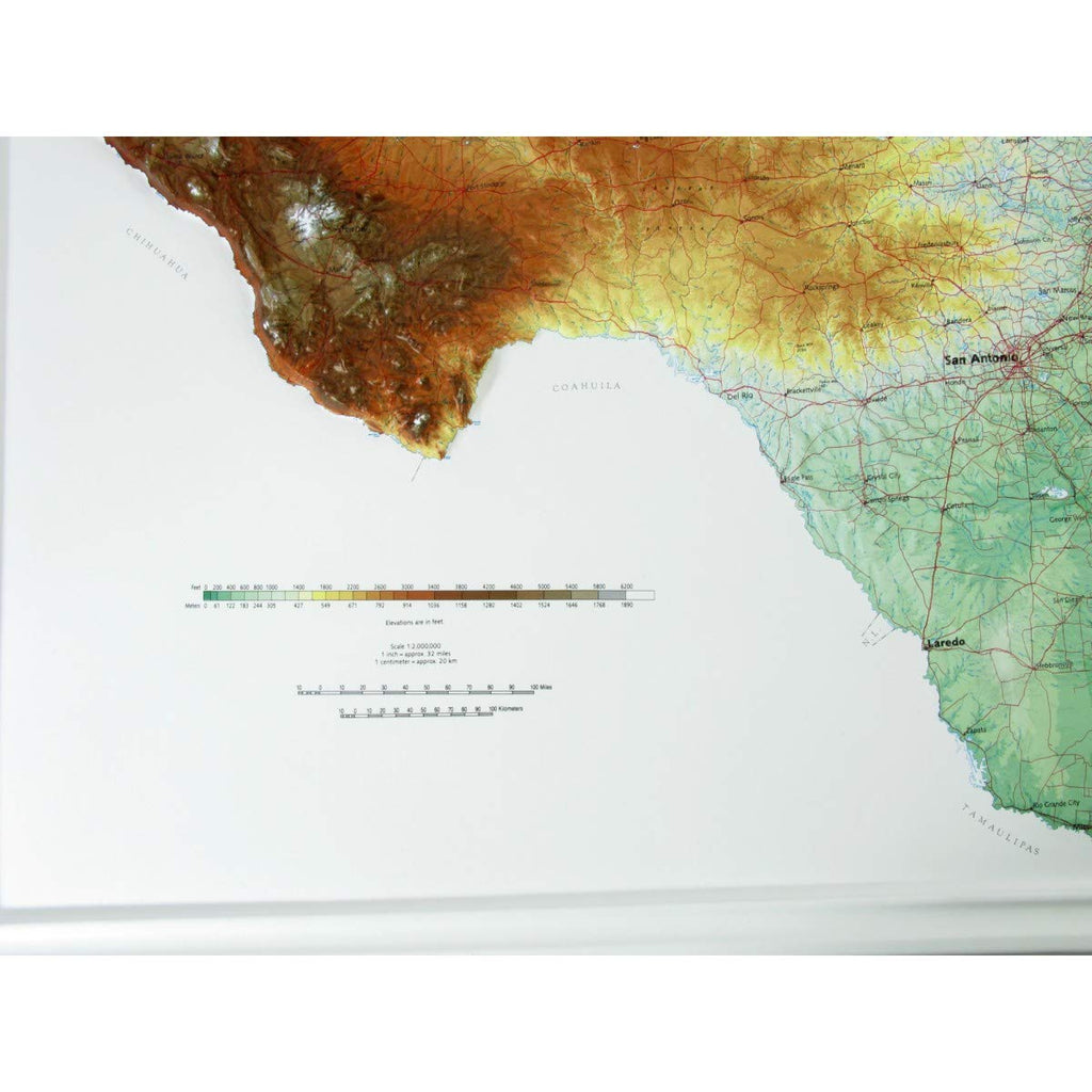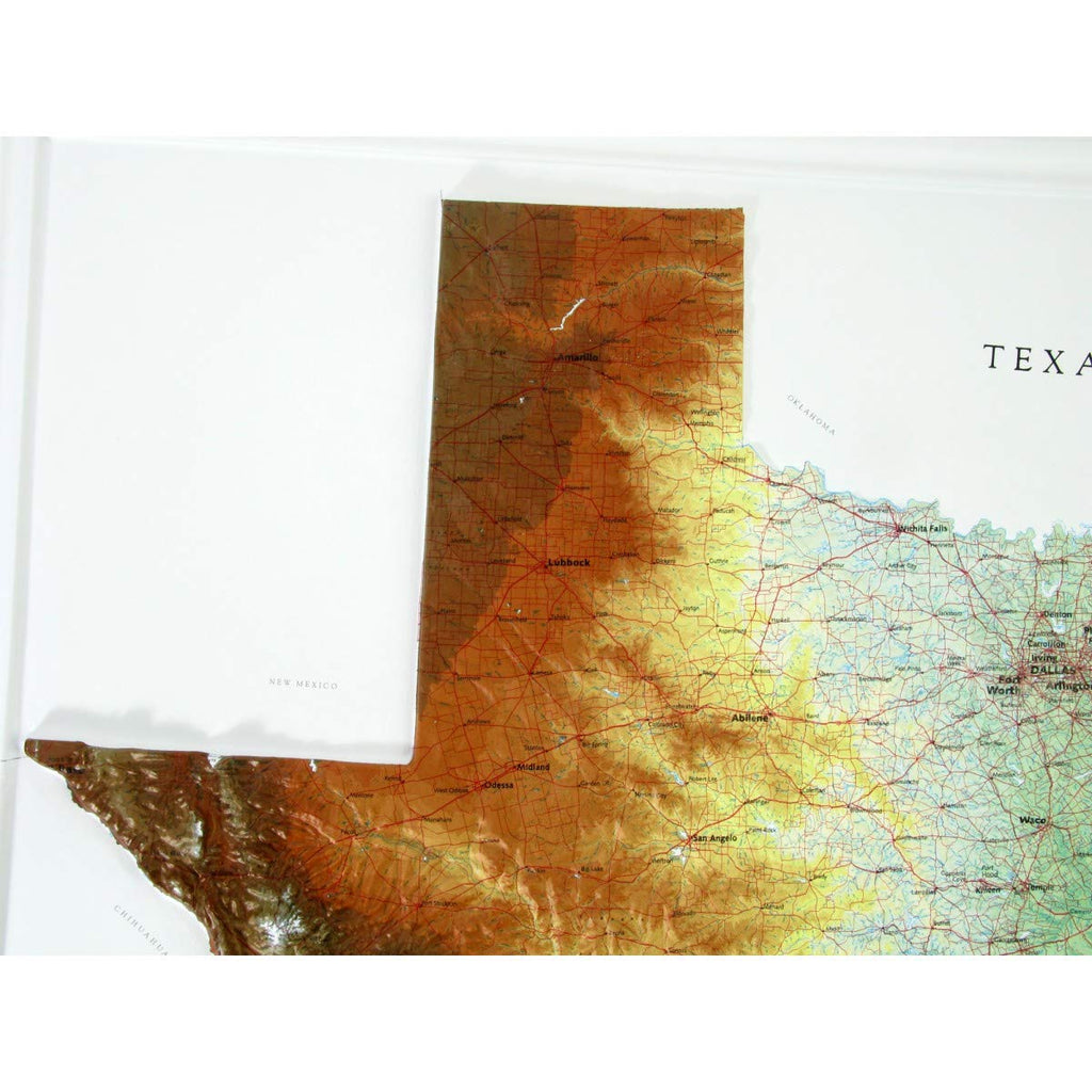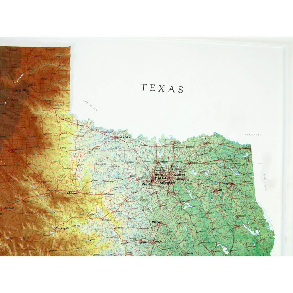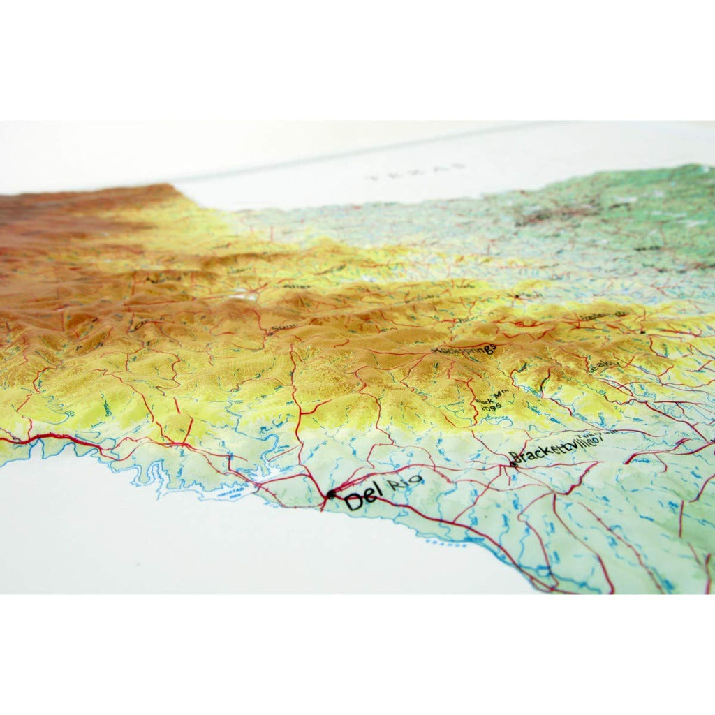 - 3D TEXAS RAISED RELIEF MAP â Developed by a team of cartographers & designers this tactile map delivers dimensionality as its features literally rise and fall depicting the real world changes in the Texas terrain.