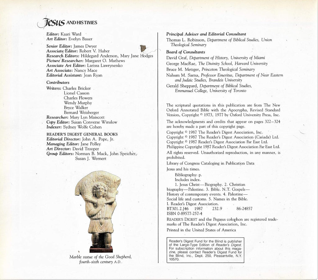 Prepared with the help of leading Biblical scholars and illustrated with paintings of the people and their culture, photographs of the ancient lands today, and maps, this volume documents the historical background of Jesus and the key events of his life.