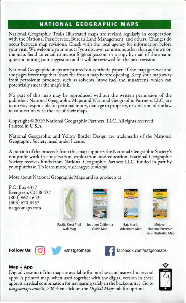 Every Trails Illustrated map is printed on "Backcountry Tough" waterproof, tear-resistant paper. A full UTM grid is printed on the map to aid with GPS navigation.