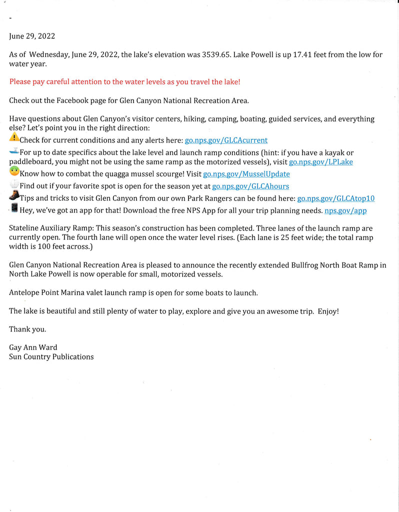 This down-to-earth and easy-to-read map comes to you in a convenient 8.5" by 11" size but unfolds to 22" by 34" to reveal the entire Glen Canyon National Recreation Area. The map includes 36 color photographs of what to see and where to see it, illustrations of the fish and crustaceans found within the lake, as well as a complete directory of the Lake's 96 navigable canyons and Stan's description of what can be seen by boating and/or hiking into each, with updates by The Josh.