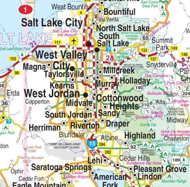 - Map Coverage Area: Arches National Park, Bryce Canyon National Park, Logan, Salt Lake Regional, St. George, Zion National Park, Downtown Salt Lake, Mileage Chart, Recreation Chart