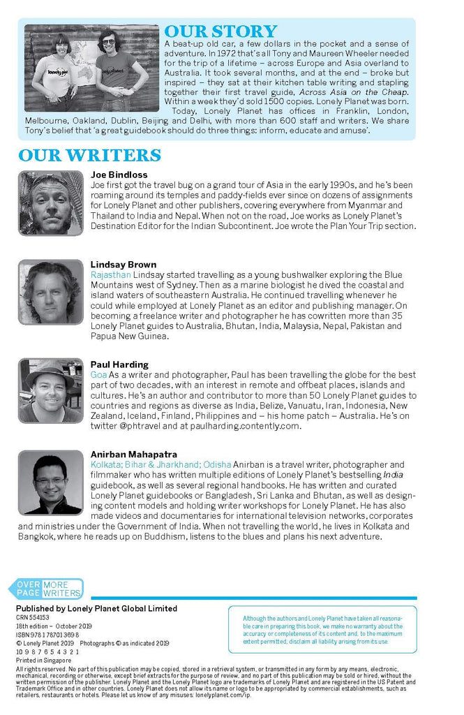 - Lonely Planet India (Travel Guide) Lonely Planet; Benanav, Michael; Butler, Stuart; Elliott, Mark; Holden, Trent; Mayhew, Bradley; Noble, John; Raub, Kevin; Singh, Sarina; Stewart, Iain; Bindloss, Joe; Brown, Lindsay; Harding, Paul; Mahapatra, Anirban; Mc