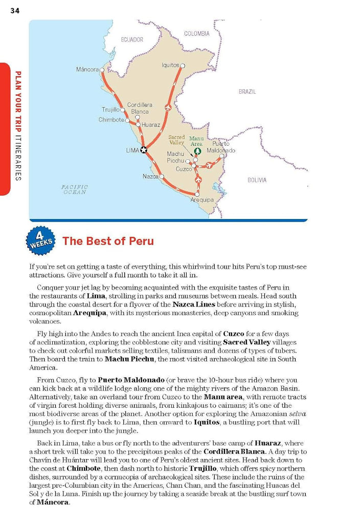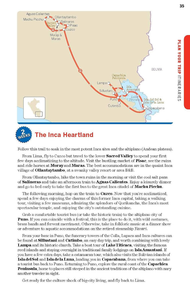 - Covers Lima, Amazon Basin, Huaras, Cordilleras, Central Highlands, Chan Chan, Cuzco & the Sacred Valley, Lake Titicaca, Arequipa, Canyon Country and more.