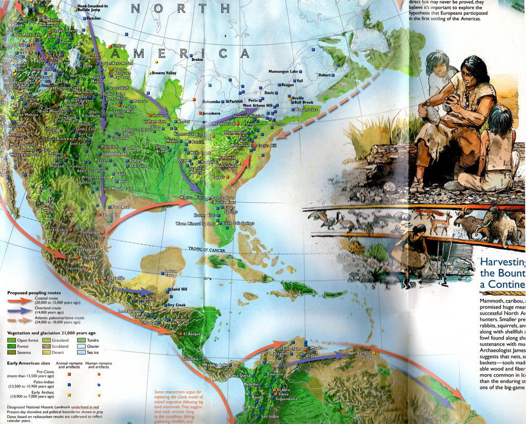National Geographic Map & Supplement, 'Peopling of the America (The Dawn of Humans)' and 'The Americas'. From the December, 2000 Issue [Map] National Geographic Society staff