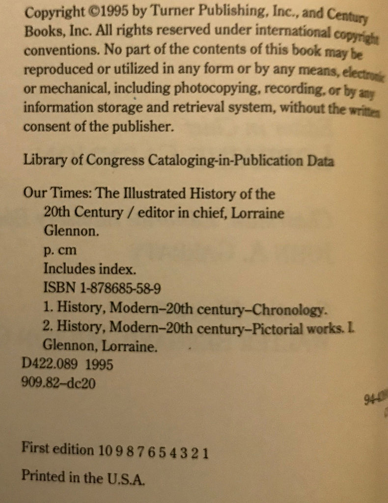 Our Times: An Illustrated History of the 20th Century Glennon, Lorraine