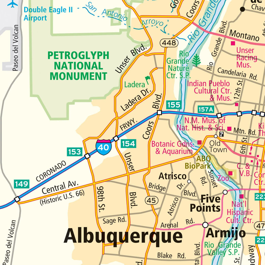 • Clearly indicated highways, county boundaries, points of interest, and more.