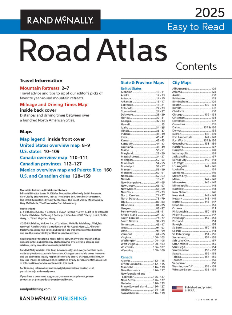 Rand McNally Road Atlas 2025: United States, Canada, Mexico Easy to Read Large Print Maps [Spiral-bound] Rand McNally