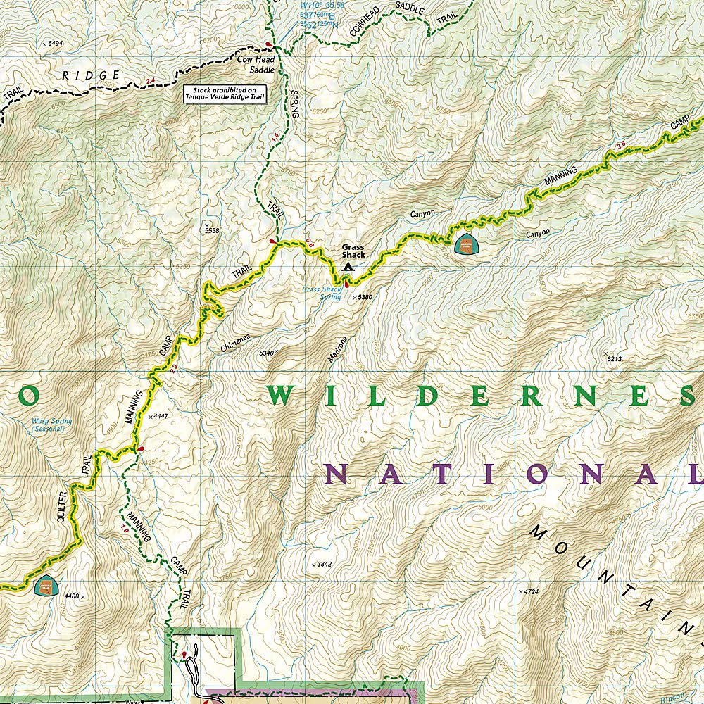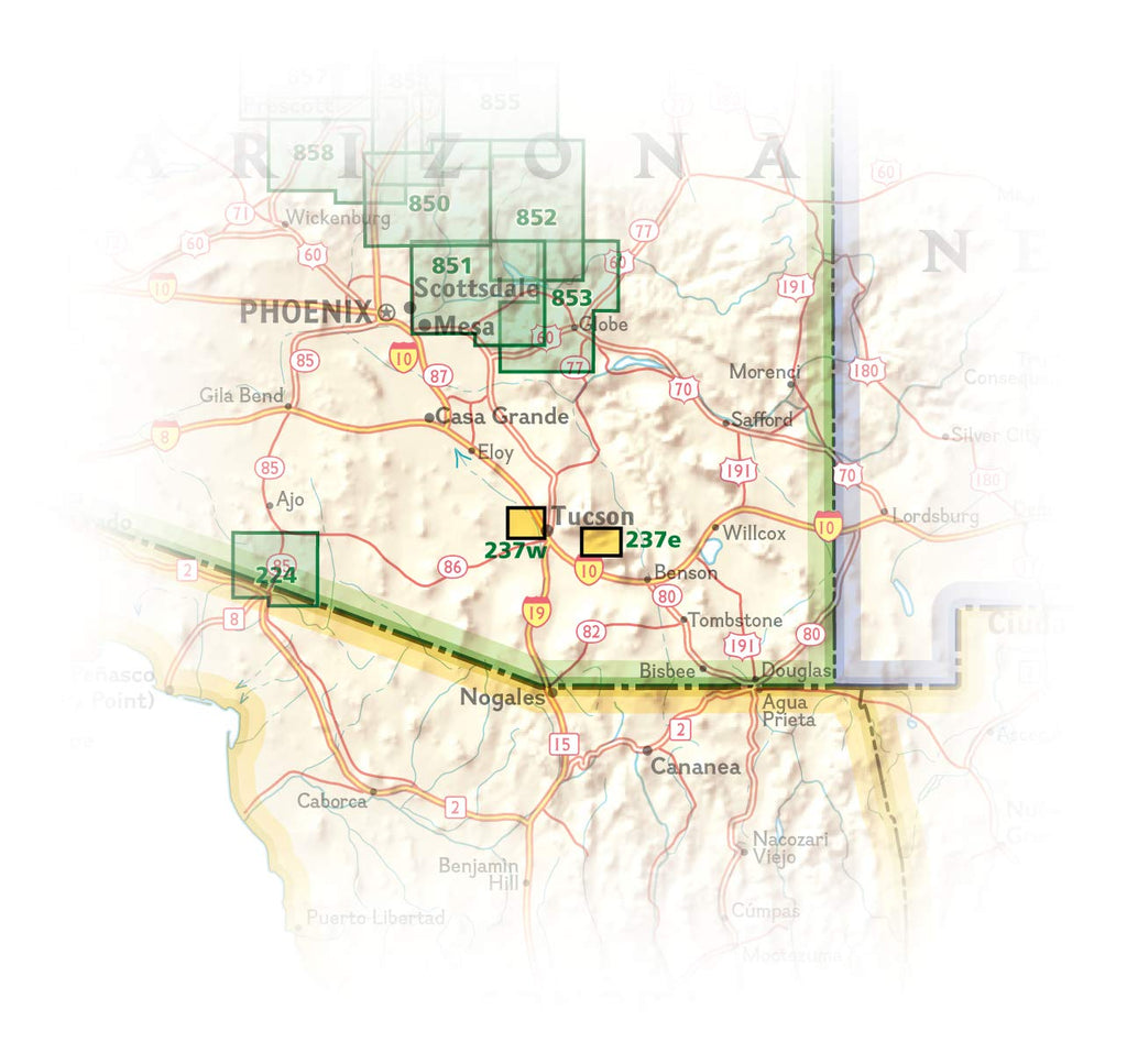 This map features detailed topography with shaded relief, elevations, and clearly defined, color-coded boundaries for parks, public lands, and wilderness areas. With miles of mapped trails including a portion of the Arizona Trail, this map can guide you off the beaten path and back again in some of the most iconic scenery in the desert southwest. The clearly marked trails include mileage between intersections and handy hiking and trailhead summaries will help you choose the path that's right for you. Recreation features are clearly marked, including campgrounds, interpretive trails, rifle and archery ranges, scenic drives, picnic areas, and points of interest.