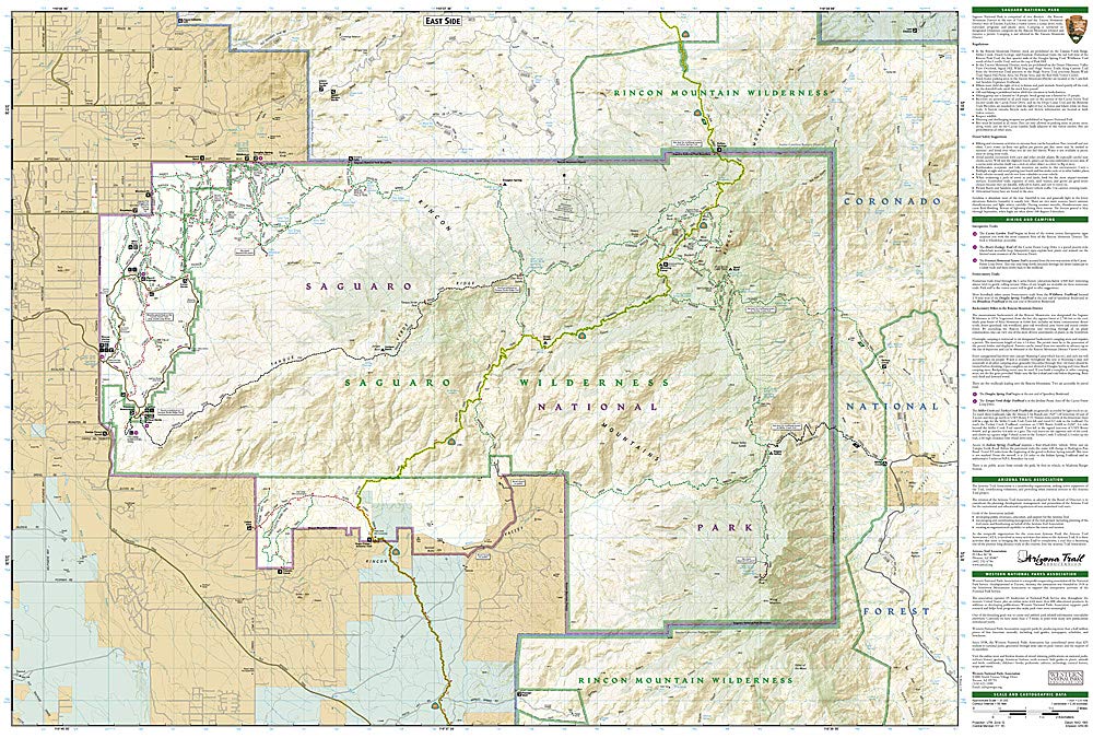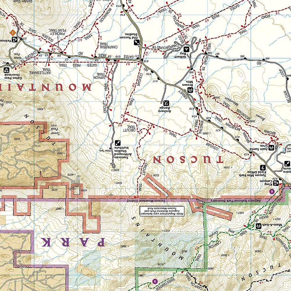 National Geographic's Trails Illustrated map of Saguaro National Park and surrounding areas to the east and west of Tucson, is the perfect map for hiking, biking, exploring, climbing, riding, camping, and sightseeing in this beautiful desert wilderness. Created in partnership with local land management agencies, this expertly researched map highlights key areas of interest including Tucson Mountain Park, Sweetwater Preserve, Robles Pass, Saguaro Wilderness, Tanque Verde Ridge, and Hope Camp, Yetman, and Petroglyphs trails.