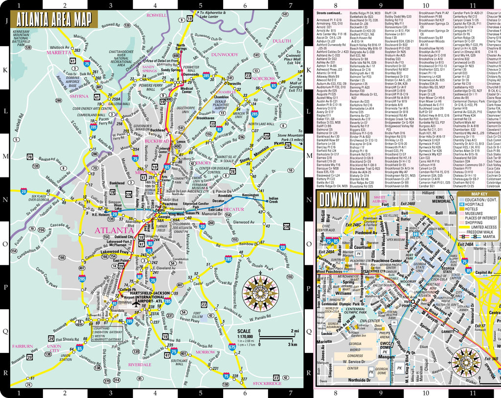 Streetwise Atlanta Map - Laminated City Center Street Map of Atlanta, Georgia Streetwise Maps
