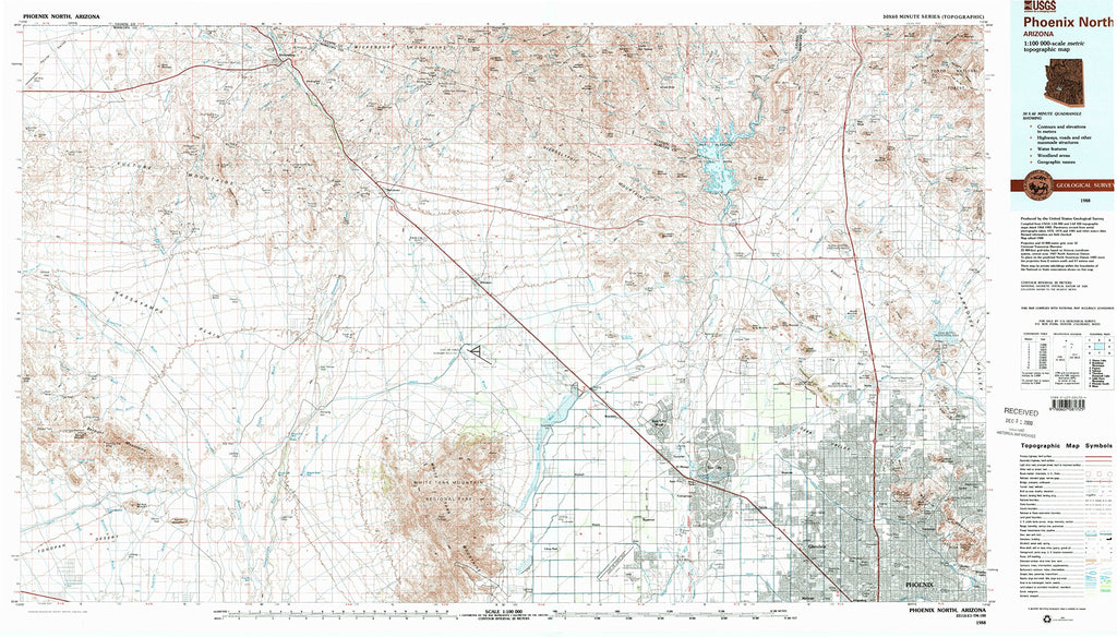 - USGS topographic map of Phoenix North, AZ, at 1:100000 scale. Heavier material. Waterproof. Tear-resistant. Foldable. Perfect for the outdoors.
