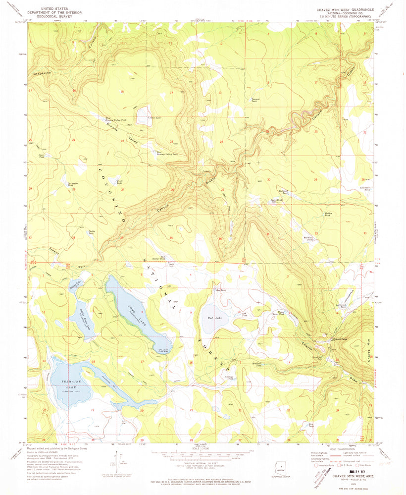 Chavez Mtn W, AZ 1970 United States Geological Survey 7.5 - minute quadrangle map