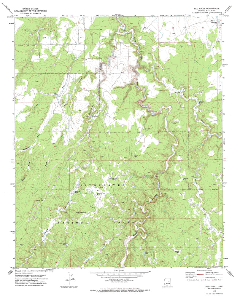 • Description: United States Geological Survey Red Knoll, Arizona Historical Map Reprint 7.5×7.5 Grid 24000-Scale 1970